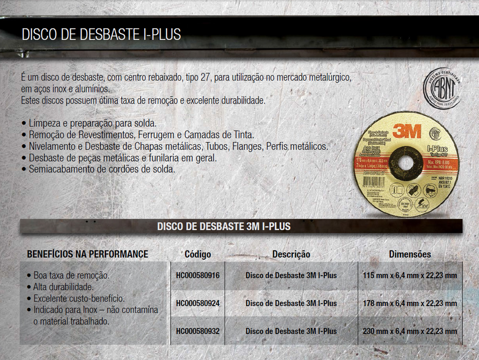 DESCRIÇÃO DISCO DESBASTE I PLUS Publicado 22 de junho de 2016 às 960 × 722 em Disco Desbaste I-Plus 3M ← Anterior Próximo →